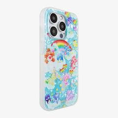 This Care Bears™ + Hello Kitty® and Friends MagSafe® Compatible iPhone case features our favorite friends from both worlds, working together in a dreamlike space of rainbows and clouds. With a background of shimmering sky blue tort, this case brings the sparkle with it wherever it goes. And, the cast of colorful characters makes it clear that all feelings and friends are welcome in a land inspired by generosity, caring, and teamwork. From Love a Lot™ Bear to Kuromi™, Grumpy Bear™ to My Melody™, a Sleepy Bear™ to hopping Keroppi™, every personality and mood is welcome here.