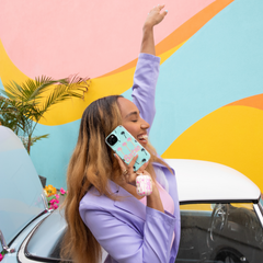 ® compatible iPhone case features a vintage turquoise sky with palm trees outlined in pink and yellow. The palm trees are clear to showcase the color of your phone and brings the signature style of Barbie® to the forefront of this case. "}'>This MagSafe® compatible iPhone case features a vintage turquoise sky with palm trees outlined in pink and yellow. The palm trees are clear to showcase the color of your phone and brings the signature style of Barbie® to the forefront of this case.